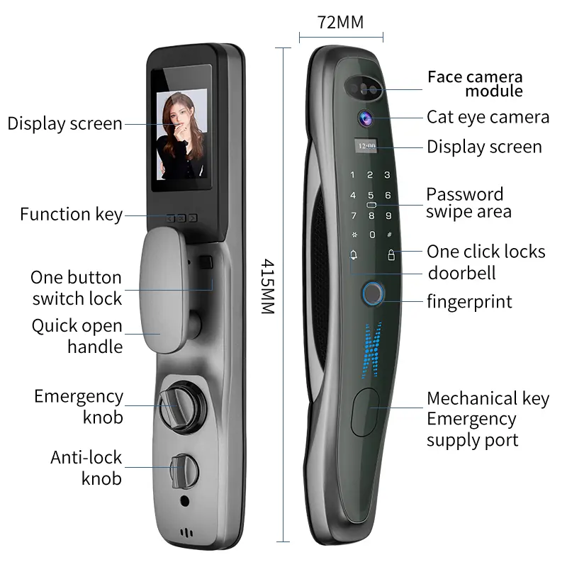 - Fingerprint Recognition- တိကျမှုမြင့်မားသော အာရုံခံကိရိယာသည် အိမ်ဘေးကင်းမှုကို ကာကွယ်ရန် မြန်ဆန်ပြီး အတုအပ အတုအပ အသိအမှတ်ပြုမှုကို သေချာစေသည်။